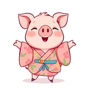 Adorn your walls with understated elegance. This poster features a pig in a silk kimono, bowing with grace.